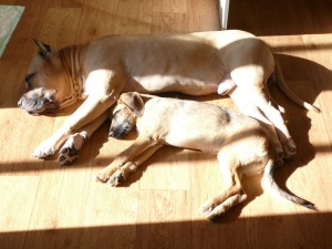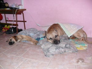 поцелуйчики там , то се.. даже к в миску с водой синхронно морды пихали . Так неслись занятые друг доругом, что сбили с ног хозяйку лабрика ( то же любимчик Чармуна , но в этот раз наш как забыл про него) .