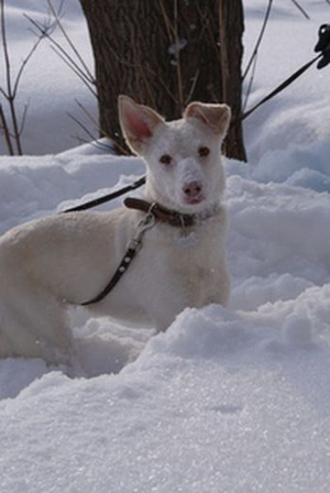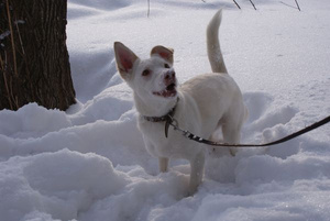 Все таки слетели с нас пинетки, когда Белка начала по сугробам носиться
