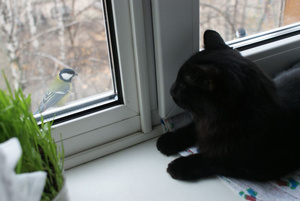 Рано утром убегал на работу, выложил на подоконник снаружи горбушку с высокими краями (выщипал мякиш изнутри), получилась ванночка, крошки внутрь сложил и досыпал семечек. Приехал сейчас - даже горбушки нет, видимо, уронили, когда теребили... Завтра куплю сметаны в картонной коробке, сделаю что-нить стационарное, но чтоб крысы в перьях, которые голуби, не добрались. Вот крепить как? Пластиковое окно, гвоздей никаких... может, водичкой полить донце, чтобы примерзло надежно?