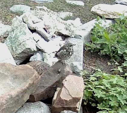 • Это, как мне тогда показалось, птенец, сидел на камушках