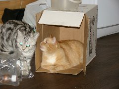Вот ,из четырех подобрашек первая освоилась,приглядела себе коробушечку А сегодня уже все по очериди выгоняли друг друга