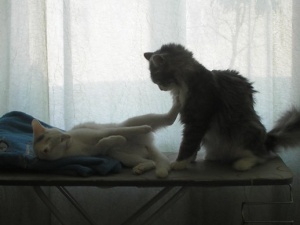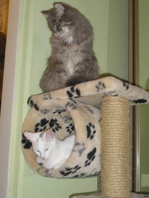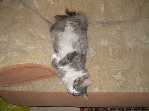 Мы только что вернулись из НИИТО, опять откапались, хм, опять хозяйкоисцарапались, теперь скушали грудку, попили бульончик и дремлем под диваном.