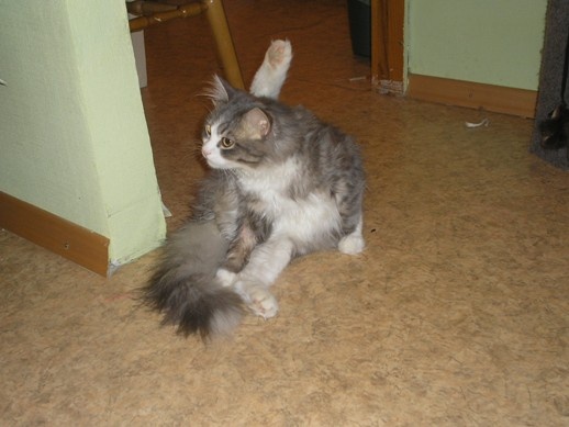 Мужчинка он серьезный, шутить не любит, сразу выпускает коготочки в нежные Наташины ручки. Вредничает(((