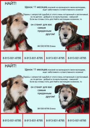 Как считаете к отрывной части, где номер телефона, может стоить добавить, что-то типа "Щенок, 11 месяцев"