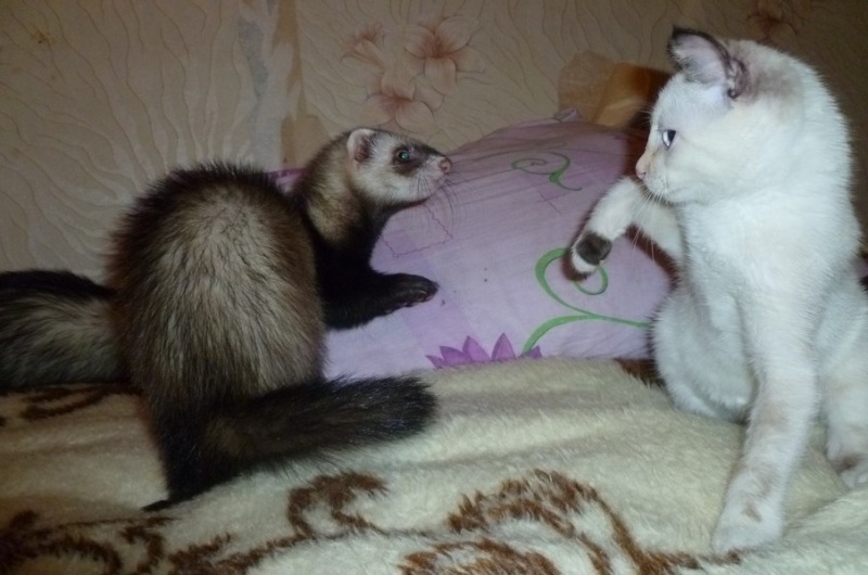 Хорёчек у Вас смешной, это его котейка так напугала, что он взлетел?