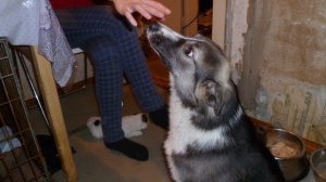 Злыдень(Тёма) вроде общается, попрошайничает-ставит лапы на колени, но руки