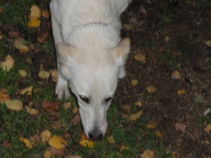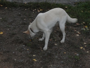 Съездили сегодня попроведовали Белочку. Она стала удивительной красавицей, шерсть густая, шелковистая, поправилась, немного подроста, мини белая швейцарская овчарка, стала прям такой