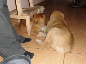 От Наиля не отходят, подросли, играют с хозяйским щенком.