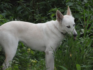 ,так как позже дала мне почесать пузико и уже не убегала от меня, и не пряталась за хозяйкой. Вообще-то она очень веселая и компанейская девченка, у нее очень много друзей, с которыми она любит играть, стала любимицей местной детворы, все говорят, что она на лисенка похожа, а по поведению-на лайку. Вот такая красавица подрастает, вся изящная, лишний подшерсток ушел, в квартире он и не нужен. Зайченок больше любит мучжин, думаю, так как "хозяином" больше месяца был Наиль на передержке, более недоверчиво относится к женщинам, что очень забавно, так как чаще наоборот. В общем, я очень рада, с хозяйкой мы постоянно общаемся по телефону, приезжаю в гости, скоро опять поеду.