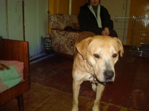 Как я поняла, помогает ей еще одна женщина - приходит вечером с ним погулять.Смотреть на него просто больно - ласковая, домашняя, замечательная собака, которая очень тоскует по общению с людьми :((