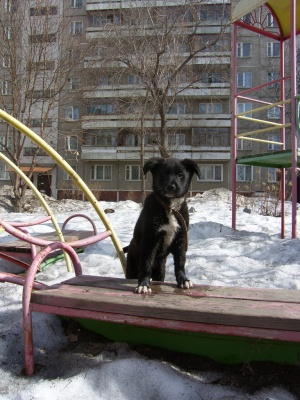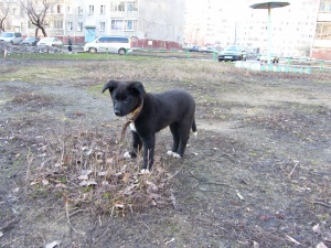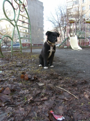 На помойке нашли щенка, около 1,5 месяцев, девочка.