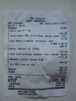 На передержку (09.04.2011-23.04.2011)– 1000 руб.