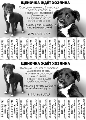 Объявления по щенку даны, но звонят пока с предложениями типа "на цепь в Тогучине, гавкать". Не хочется отдавать такую славную девчушку в такие руки. Если щенок пристроится раньше- мы с удовольствием передадим средства другим нуждающимся или вернем благотворителям.