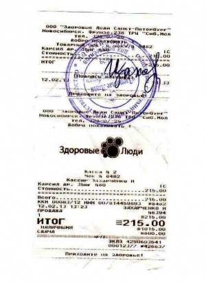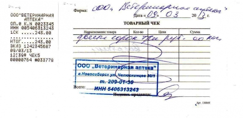 Прививка (Эурикан с бешенством) - 600 руб. - чек 7