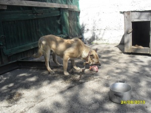 Плюс еще Дик некоторое время назад умудрился порвать свой ошейник (новый, кожанный!), естественно сорвался и ушел погулять! Слава богу хватило ума вернуться обратно... туда где кормят! Поэтому Дику еще и ошейник новый нужен, у меня на него нет (сейчас он временно в чужом сидит).