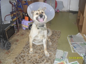 Но мы пока не записываемся, потому что самая главная проблема - куда его девать после операции?! Обратно в будку врачи категорически запретили! Минимум НЕДЕЛЮ (вообще сказали дней 10, но мне кажется это много) Дика надо будет держать в тепле (и в воротнике). Я уже голову сломала - куда его деть на это время?!