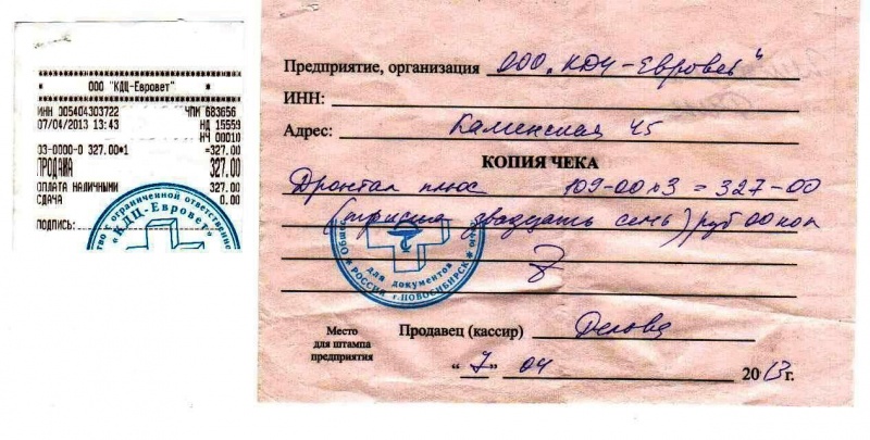 Дронтал+ (3 табл.) - 327 руб. - чек 6