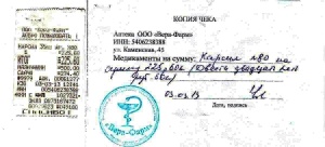 На прием в клинике (Гискан+Димедрол) - 448 руб. - чек 1