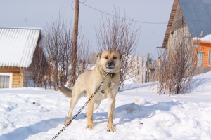 "Отдались" по договору, почти в город - станция Иня-Восточная, условия хорошие - будка, растяжка, просторный, чистый двор, два кота и многоразоваявдень кормежка