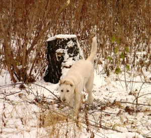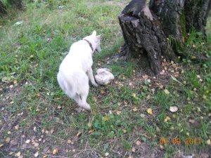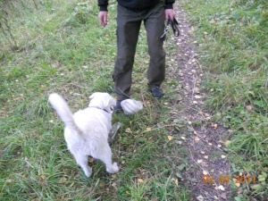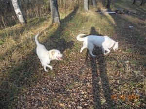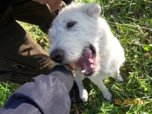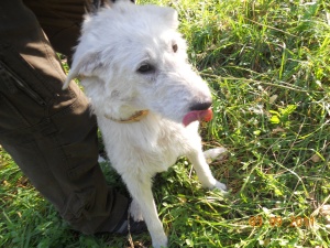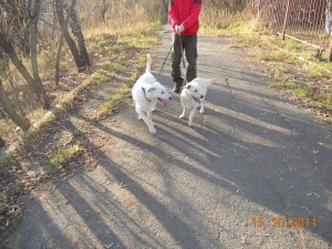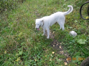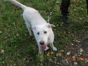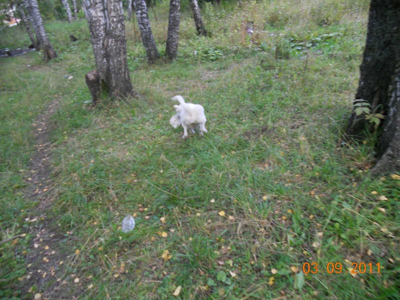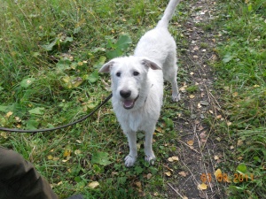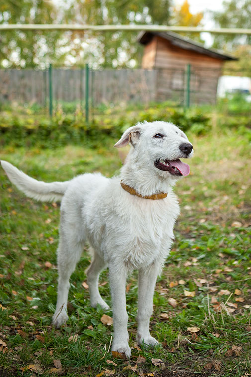 Когда первые же встречные люди спросили что это за порода собак такая, язык не повернулся сказать, что дворняга. Взяла грех на душу - сказала, что это новая недавно выведенная порода Белый терьер!