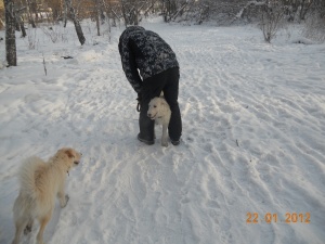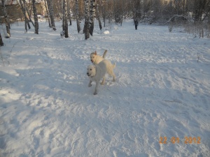 А Нюша, тем временем, живет-не тужит, ей и так отлично! Ходили с ней гулять, сильная такая. Хорошо хоть послушная, можно отпускать, подзываешь - подходит. И что же это ББН моя (Большая Белая Нюша