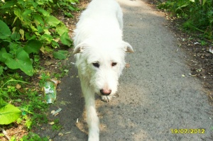 Так вот, многие прохожие на Нюшу смотрели очень внимательно, заинтересованно. Нюша действительно бросается в глаза - большая, белоснежная, послушная, с бородкой!
