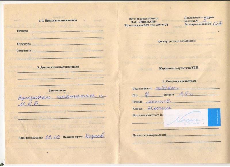 СВ сказала, что сначала лечим вагинит и цистит, а потом будем разбираться с МКБ (тогда уже и мочу будут изучать). Поэтому пока лечебный корм не назначила (наоборот подчеркнула, что сейчас корм менять не надо), но позже, когда пройдет воспаление, корм лечебный всеравно понадобится.Повторю еще раз.