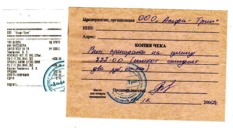 На лекарства - 2696,28 руб. - чеки 2, 3, 4, 5