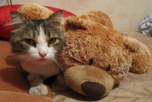 Жаль мне расставаться с ним, он очень верный друг и ласковый котяркин! Но к сожалению я не имею возможности у себя держать животных, я всё время на работе, дома он один, 1 июля я уезжаю, а Лису сейчас нужна забота, внимание и хороший уход и кормление, только тогда с ним будет всё в порядке. Нервишки у него всё равно расшатаны, он хоть и начал доверять людям, но всегда настороже, если что, готов к атаке, себя в обиду не даст, потому, что досталось ему похоже не мало, бедняге