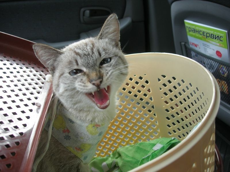 Господи, я все это уже где - то видела и слышала. Когда свою Лилу носила на снятие швов, она таааакую силу показала, да и зубы тоже, что врач на неё намордник был вынужден одеть!!! Это клон моей кошки!!! Стерва еще та, а как начнет ласкаться, так все готовы ей простить!!!!!