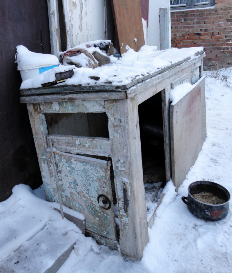 Так же нужны теплые вещи или сено, что бы утеплить внутри будку. У меня были, но мама все увезла в церковь.
