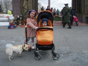 Вчера Белка была на параде с хозяйкой и её новыми друзьями Анитой и Костей,Бэллочки теперь так зовут красотку сшили юбочку и вчера все спрашивали что эта за такая эксклюзивная элитная порода собаки