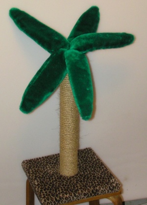 Вот с табуреткой, мне кажется, очень опасно. Чем выше пальма, чем больше масса тела и активность кота, тем больше вероятность упасть