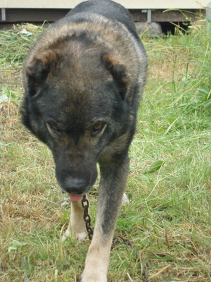 Т.к. как и у всех у меня тоже начался дачный сезон, а всех собак я не могу таскать с собой по области, я забираю только Мергену и Ника, Шерхан же остается в гараже. Но т.к. сидеть там двое суток безвылазно он не может. Я прошу человека приезжать с ним гулять и кормить в наше отсутствие, естественно не бесплатно, но за то я спокойна, что когда я вернусь он будет на месте, выгулян и накормлен. И этому человеку тоже огромное спасибо.