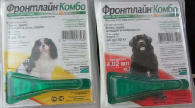 2.Капли Фронтлайн Комбо-3шт -для 2,5-10кг.и 3 шт от40 до 60 кг.