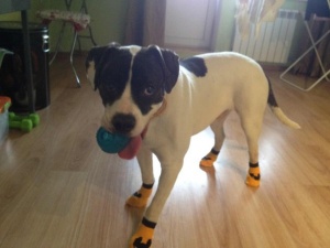 Нельсон - теперь живет у меня дома на передержке, третьей собакой. Хотя недавно был четвертой, так как жила еще питостафочка Ума. Ну с учетом что свои это ротвейлер и английский бульдог, то живется нам очень весело.