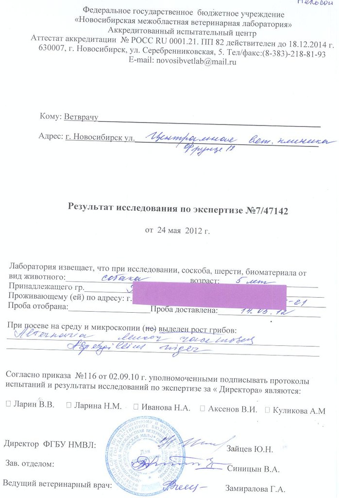 У нас не очень хорошие новости про Тора, в понедельник будет более полный анализ, и там уже скажут точно. На сегодня у него какая то жуткая инфекция и паразиты, которые опасны и человеку. Название из головы вылетело.