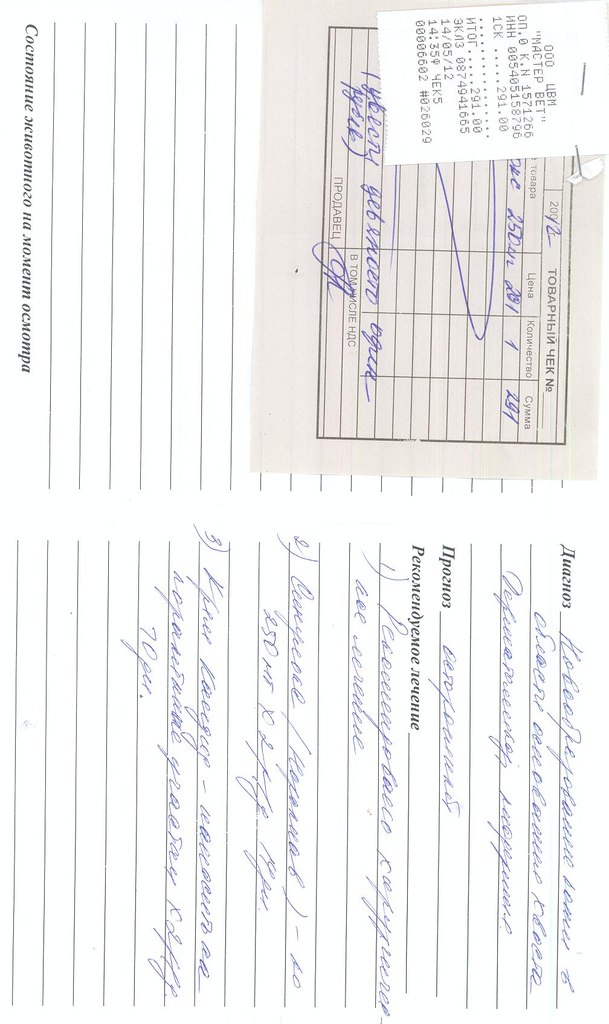 Нельсон покрылся коростами, тоже повезем в ЦВК. Еще у него на глазу появилось на больном какое то небольшое кровоизлияние.