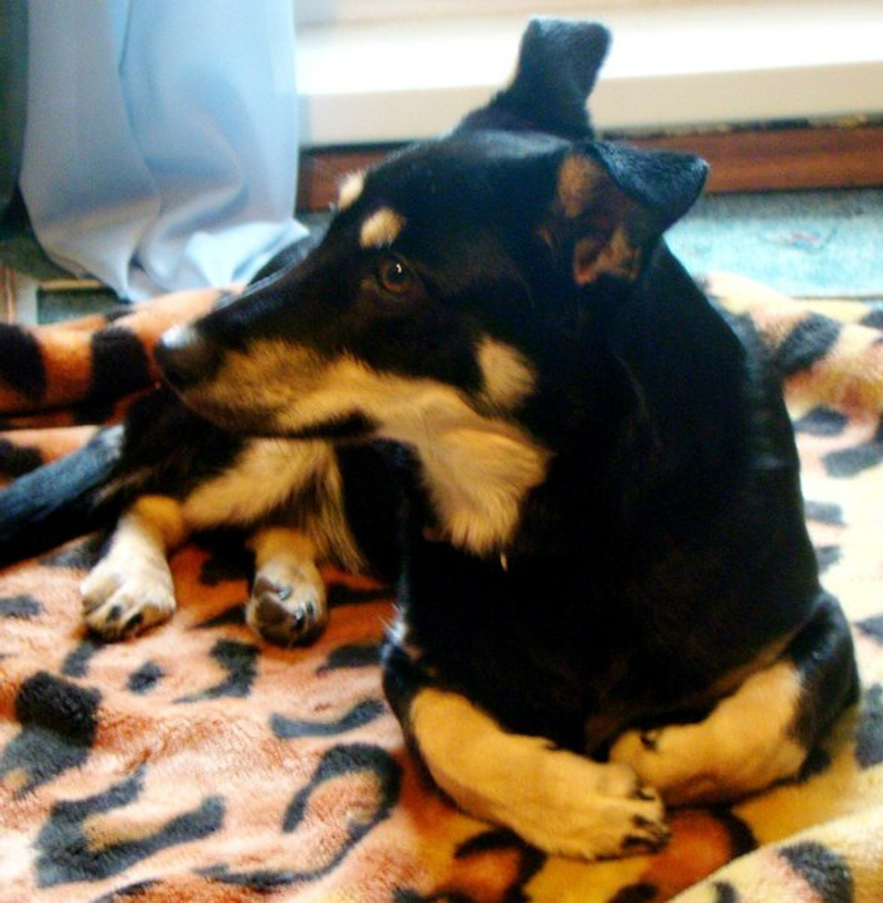 Можно я поделюсь фотографией Пирата (самого первого пристроенного щенка от Динки) . Видимо проживание с детства в одной комнате с кошкой не прошло даром