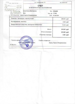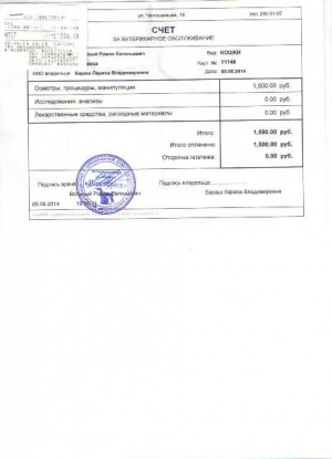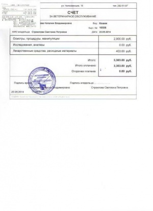 Так как я и ранее кастрировала в этой клинике и всегда получала только чек, который принимался за оправдательный документ, то не возникло мысли требовать другие документы. Теперь будем знать, что просить