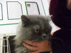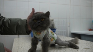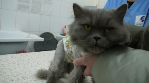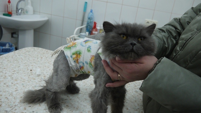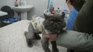 На прошлой неделе стерилизовали обеих кошечек . Чёрную Ночку и серенькую Фанечку. У Фани ещё удалили больной зубик, у которого уже свищ образовался. Сегодня Фане был назначен послеоперционный осмотр и повторный укол антибиотика, т.к. во время операции выяснилось, что у кошки начиналась пиометра. Вовремя прооперировали.