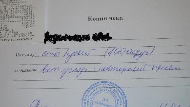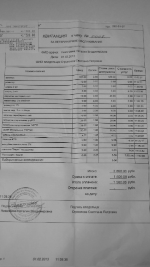 1)Чек 1 (за лечение Ночки) – 2783,00 руб