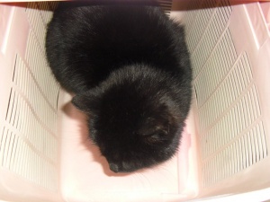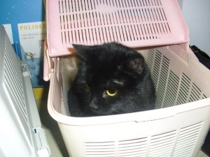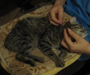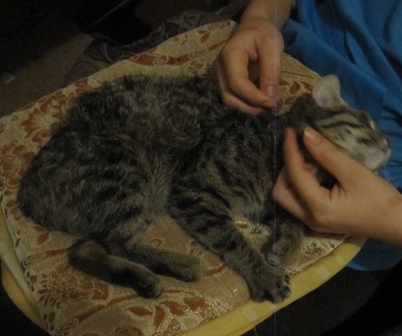 Несколько дней назад чёрной Ночке стало плохо, поднялась очень высокая температура, появилась вялость. Обнаружили это поздно вечером, поэтому повезли кошечку в Ветаклиник, тем более, что оперировали её там же. За 1,5 суток до плохого самочувствия Ночку обработали Стронгхолдом. В ветаклиник сказали, что у кошки интоксикация. Оставили Ночку в клинике на ночь, поставили уколы и капельницу. Спасибо большое Шантуровой Т.В.