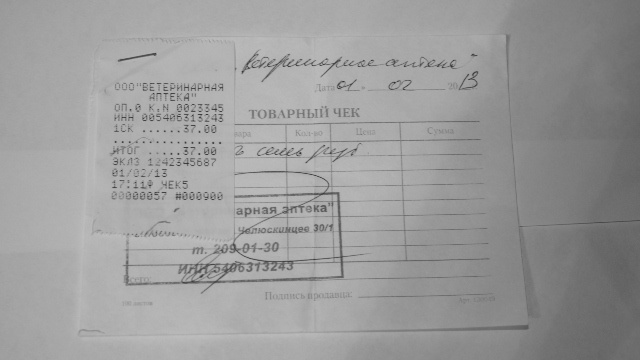 2)Чек 2 (ветпрепараты) – 135,00 руб