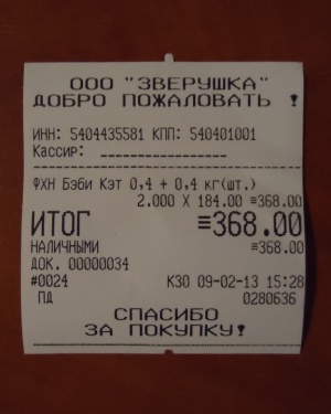 5) Чек 5 (корм для Васятки) – 368,00 руб