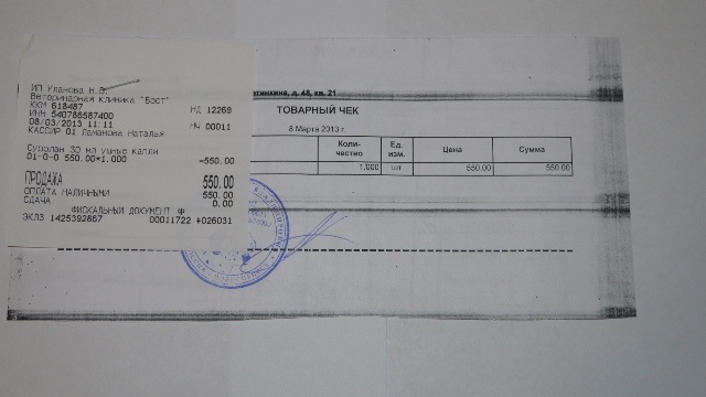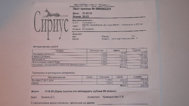 1)Чек 1 (ветуслуги) – 1115,00 руб