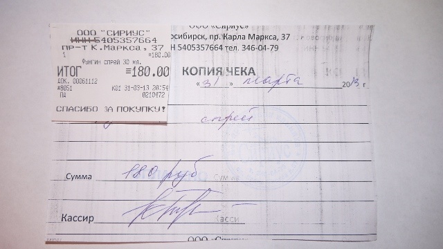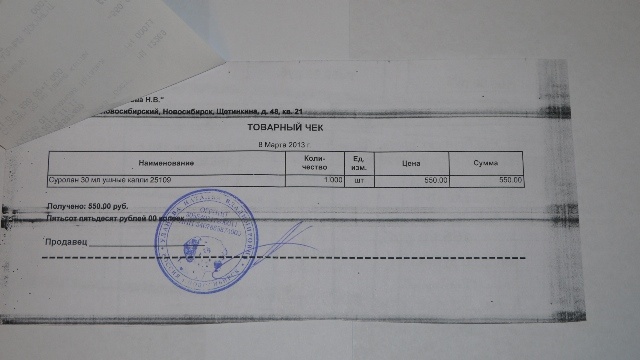 1)Чек1 (Капли для ушей Фане) - 550,00 руб