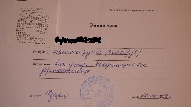 3)Чек 3 (анализ шерсти соскоб) – 370,00 руб