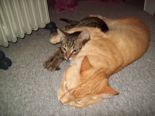 Очень удивительно, но раньше Рыжик жил с крыской, никогда не обижал её. Но недавно крыска умерла от старости и Рыжик заскучал. Вот хозяева и решили взять ему в друзья моего Васятку.