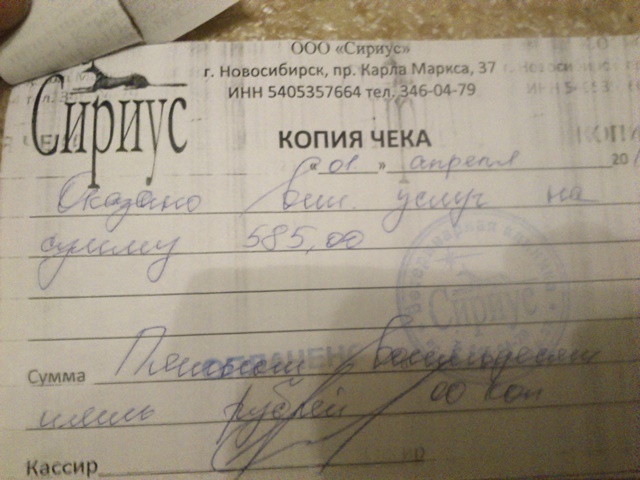 4)Чек 4 ( повторный приём+повтор. сыворотки) – 585,00 руб